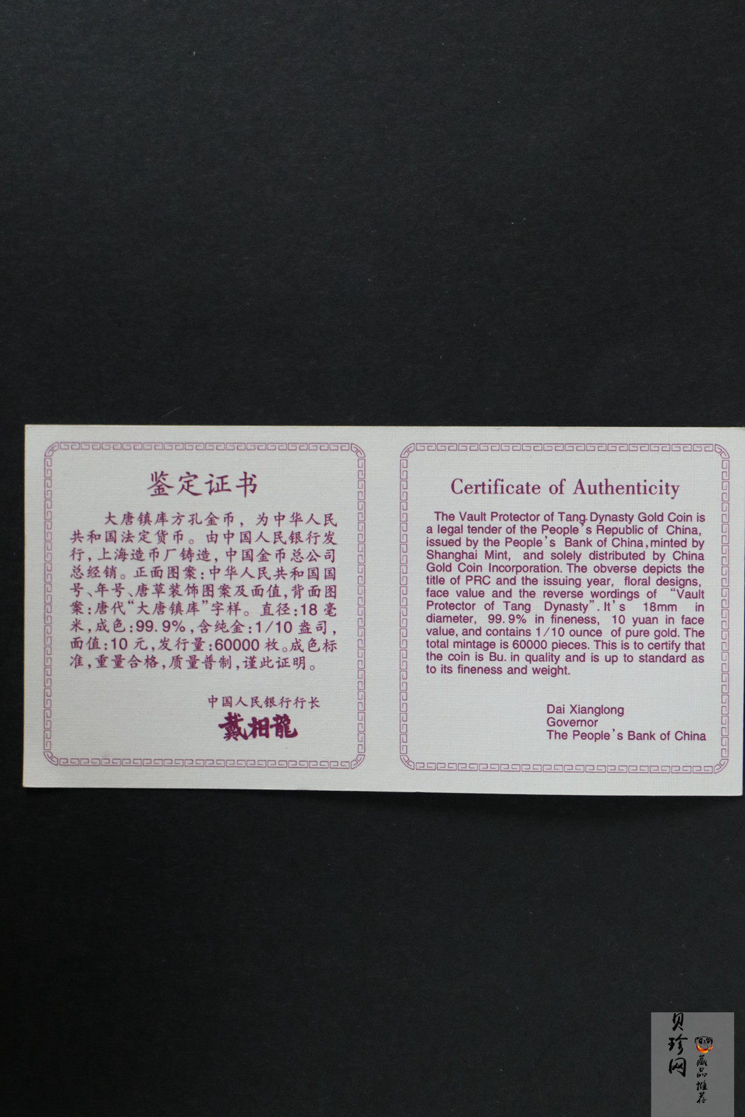 单币:1998年大唐镇库金钱金银纪念币1/10盎司普制金币