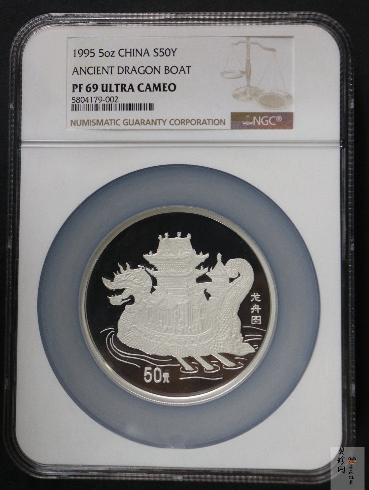 【950123】1995年中国古代航海船-龙舟图5盎司精制银币