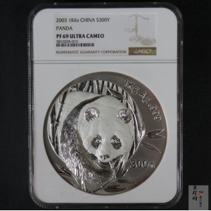 2003年开始,胡福庆先生担任中国金币总公司设计部经理,当时因为市场的反响很强烈,在经过2001年版和2002年版“熊猫”图案固定后,2003年版“熊猫”金币的图案又开始变化了。