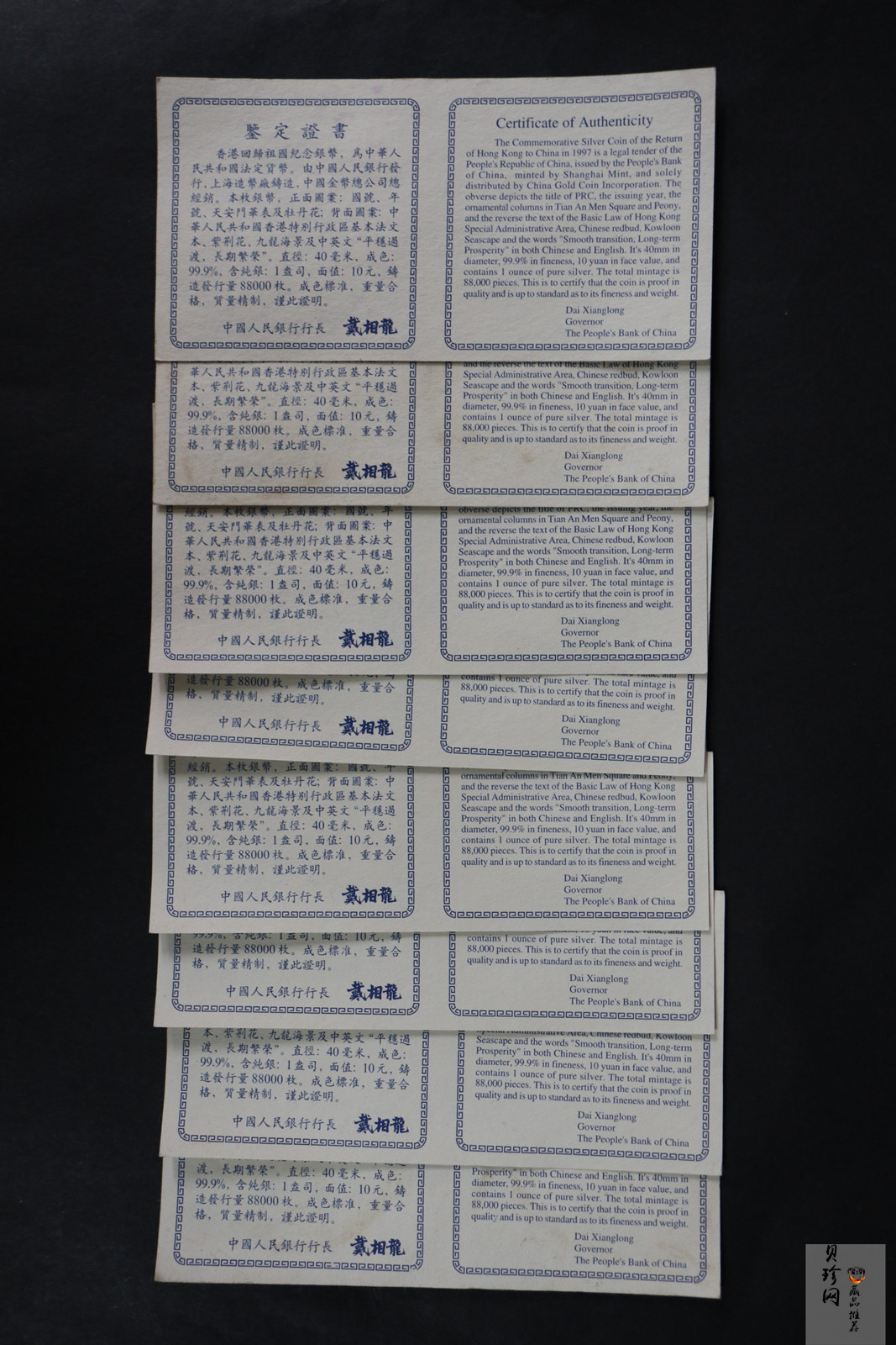 • 【961203】1996年香港回归祖国银纪念币(第2组)1盎司精制银币