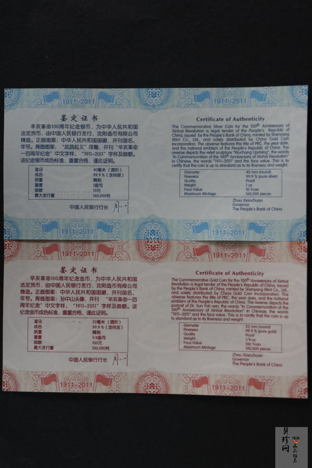 【119120】2011年辛亥革命100周年金银币2枚一套