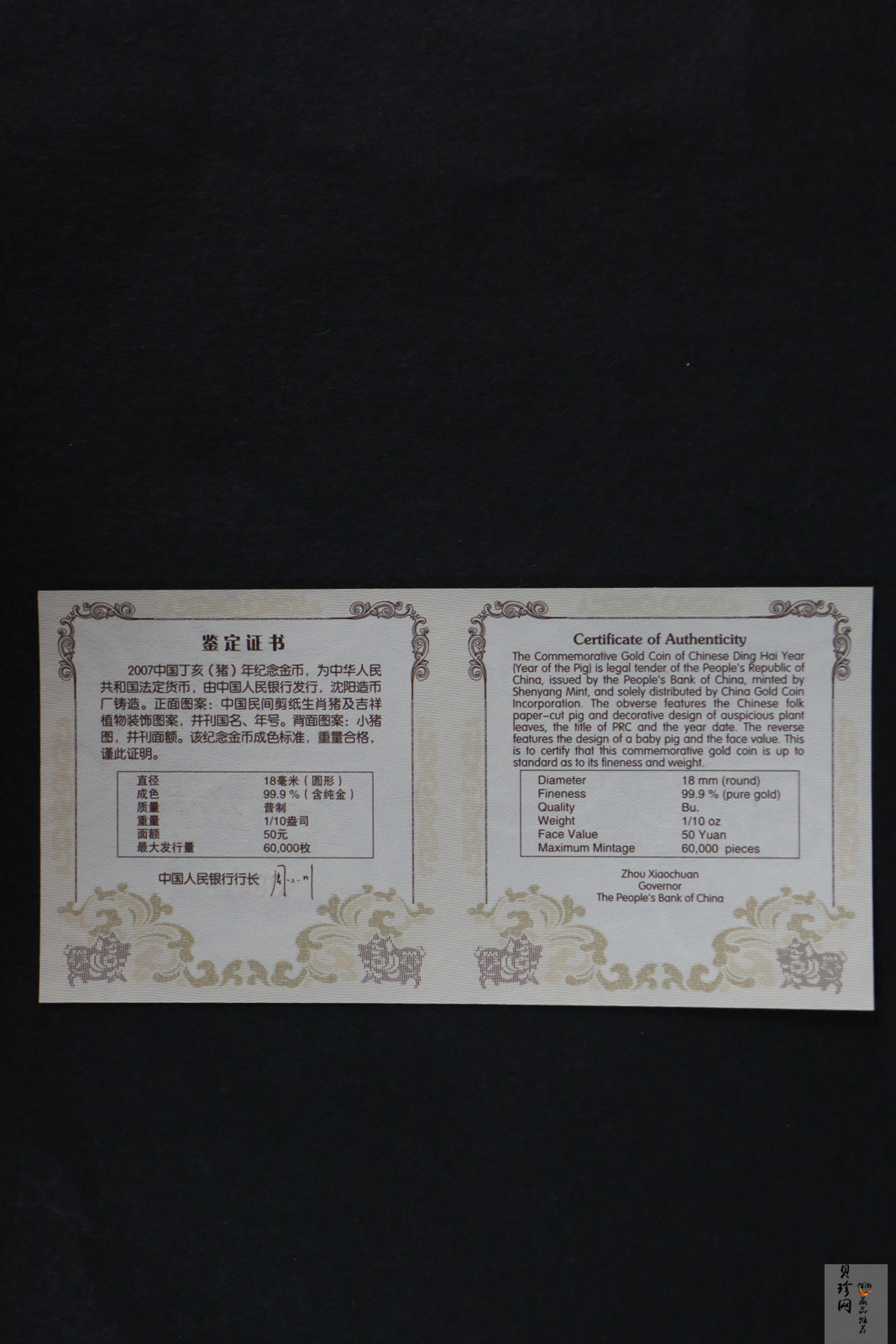 • 【061201】2007年丁亥猪年生肖1/10盎司普制金币