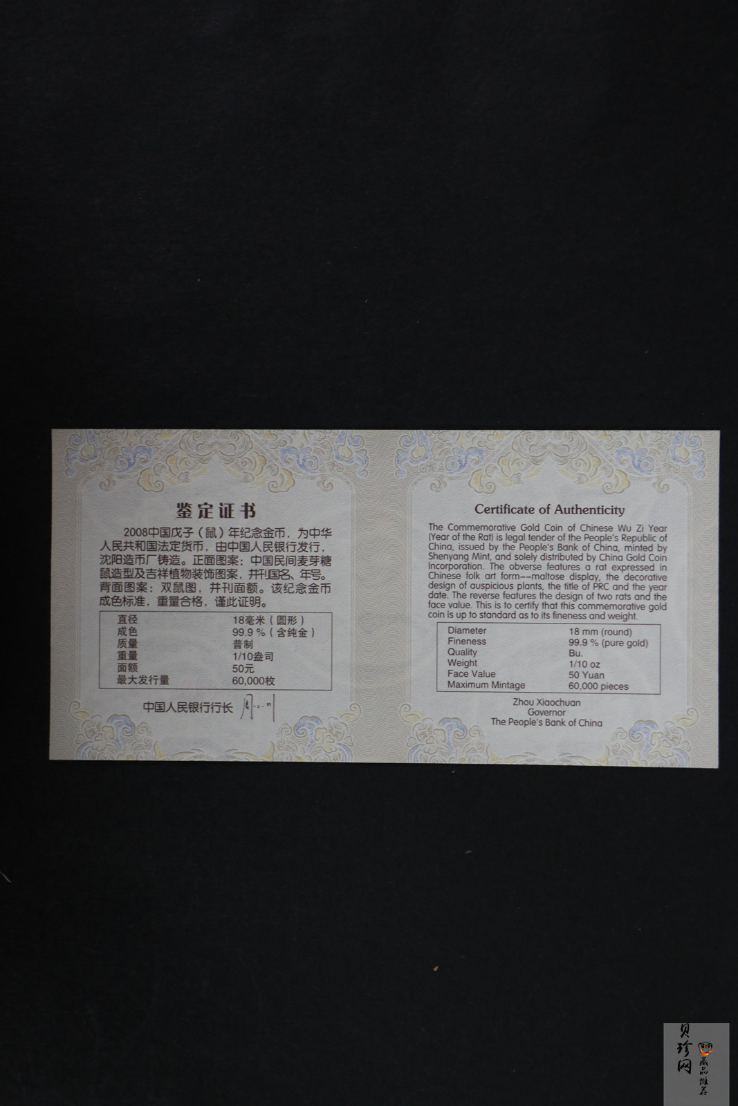 【081212】2008年戊子鼠年生肖1/10盎司精制金币