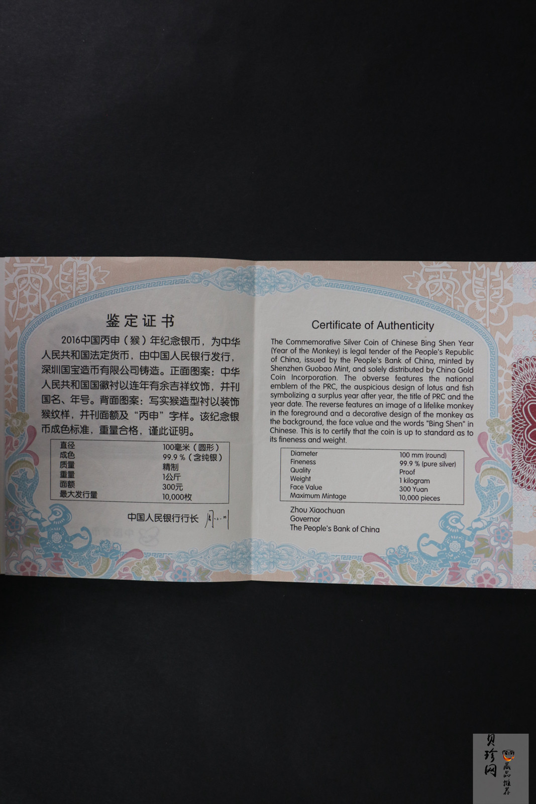 • 【151415】2016年丙申猴年生肖1公斤精制银币