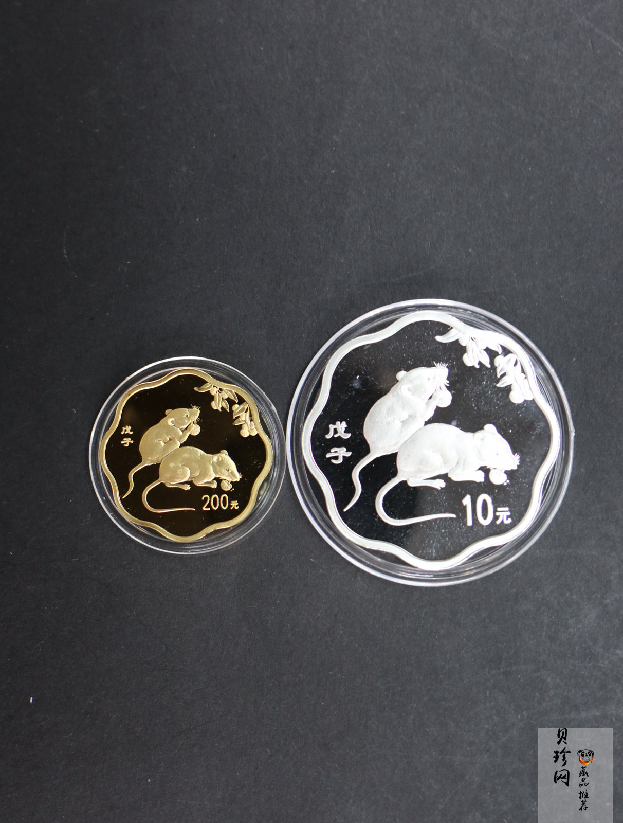 套币:2008年戊子鼠年生肖梅花形精制金银币2枚一套