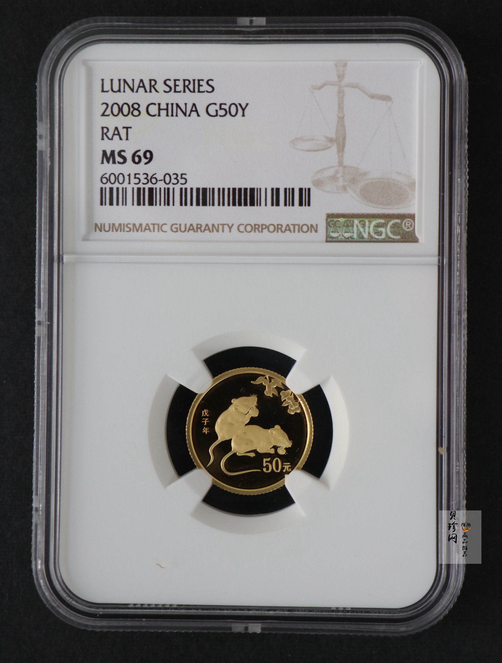 单币:2008年戊子鼠年生肖1/10盎司普制金币