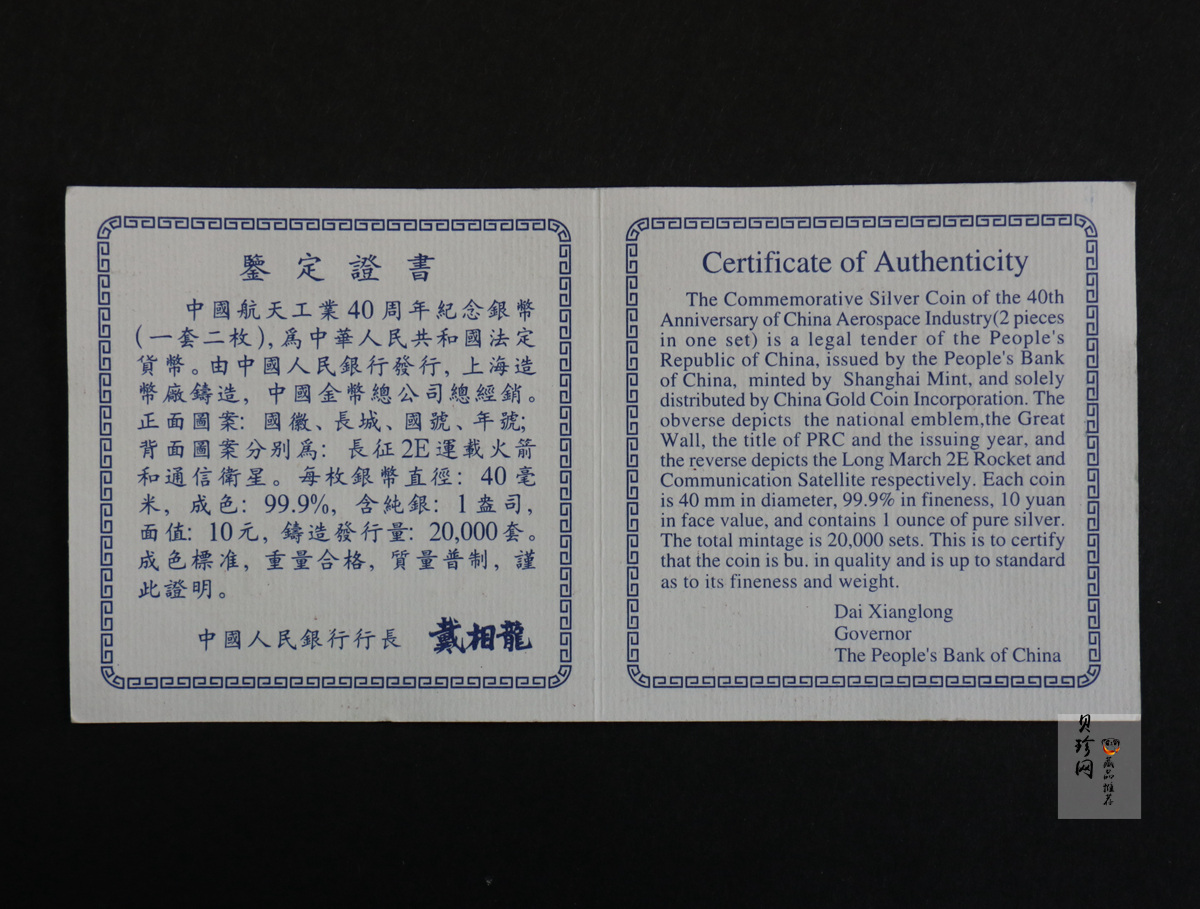 套币:1996年中国航天工业创建四十周年纪念1盎司银币两枚一套
