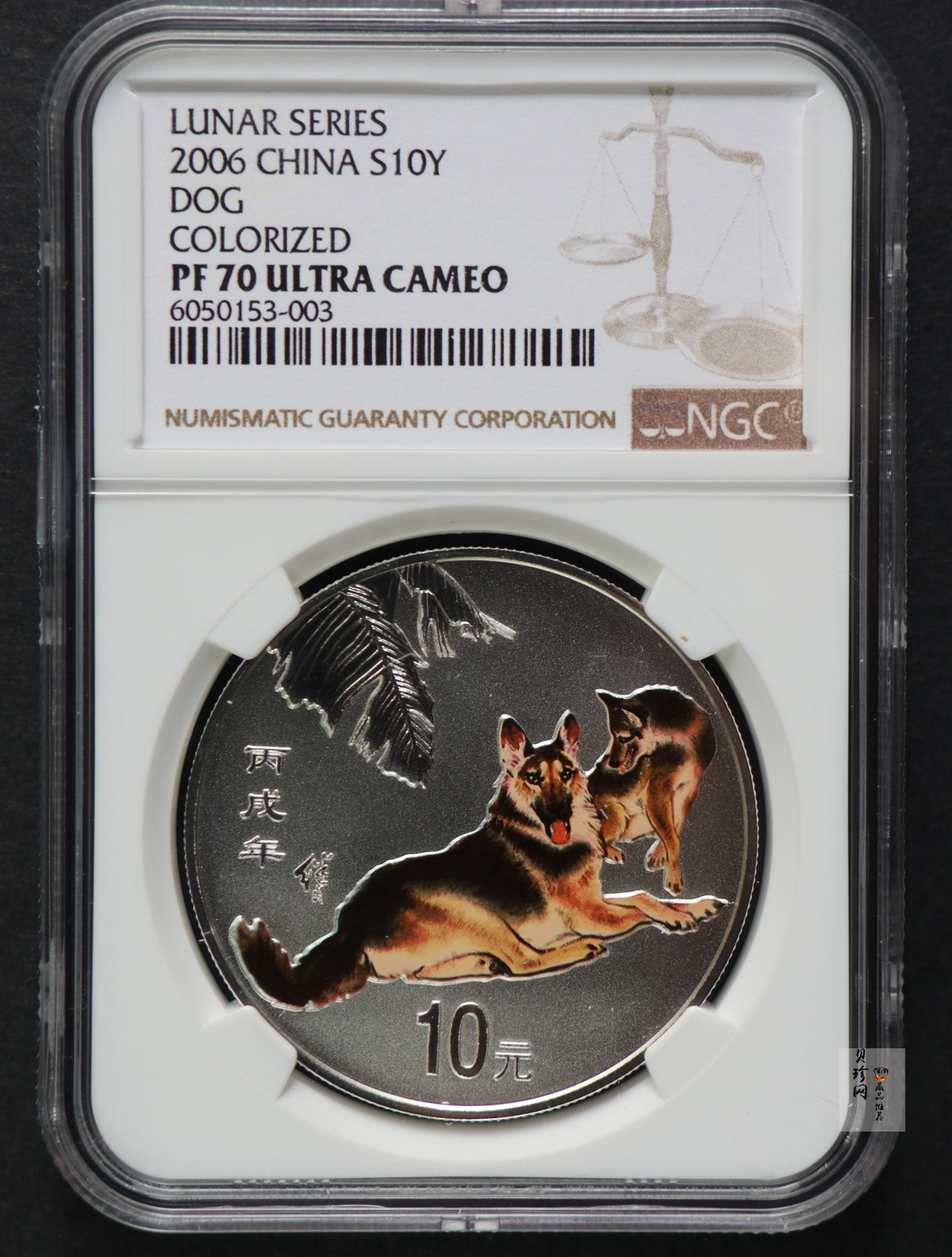 单币:2006年丙戌狗年生肖1盎司精制彩银币