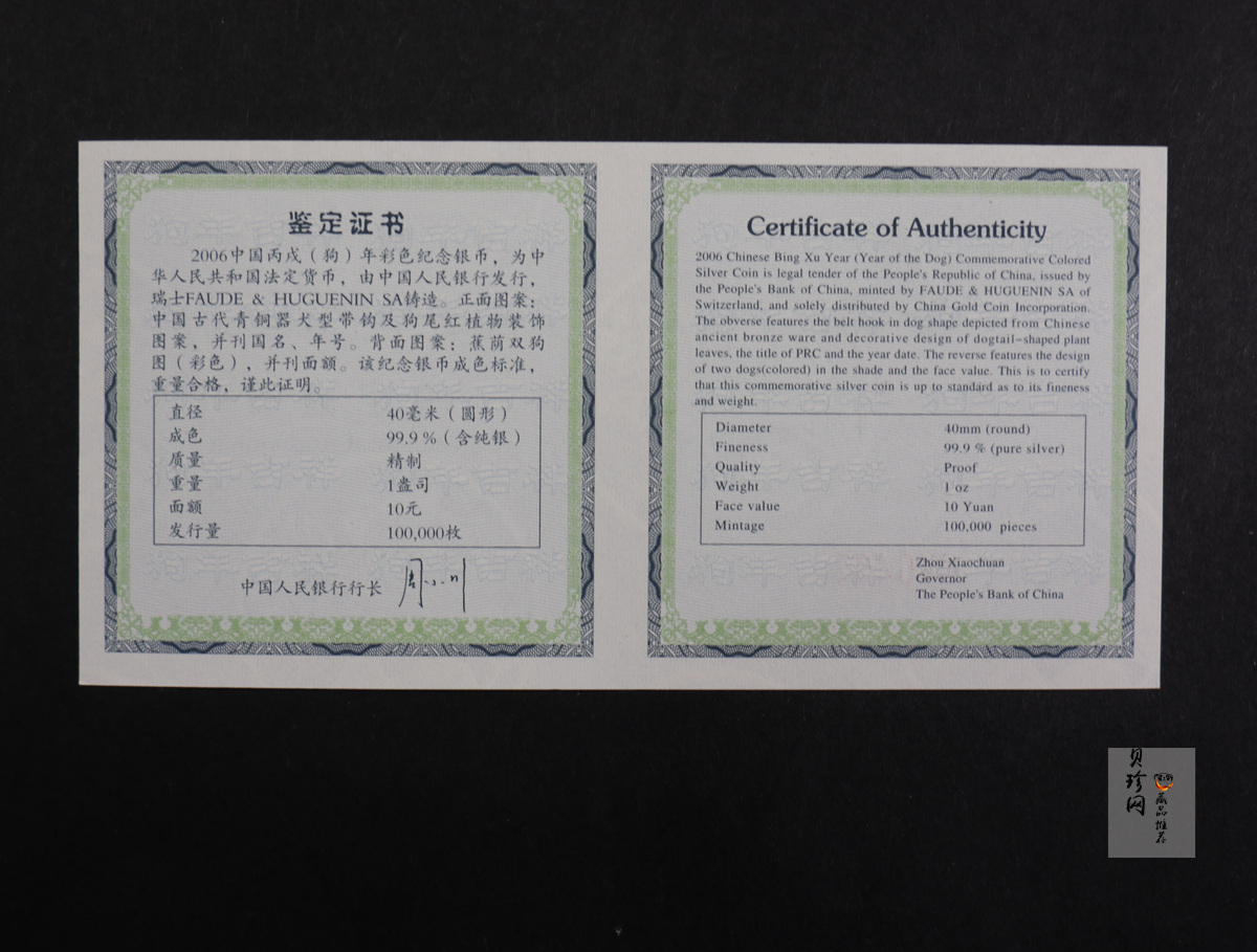 【060209】2006年丙戌狗年生肖1盎司精制彩银币
