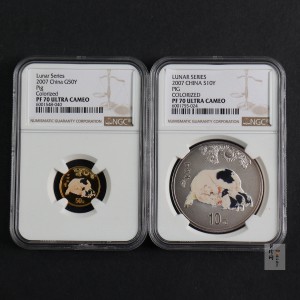 套币:2007猪年彩色生肖金银币2枚一套