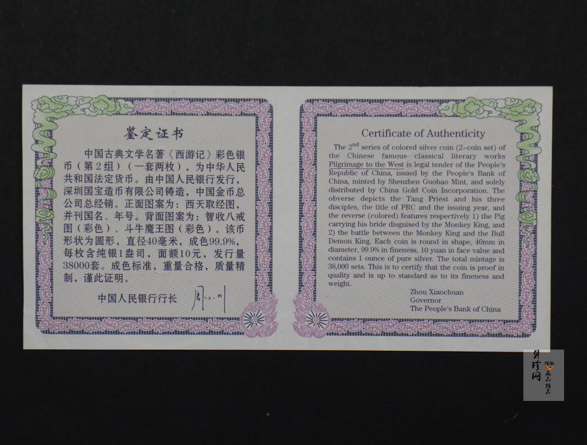 套币:2004年中国古典文学名著西游记2组1盎司彩银币两枚一套