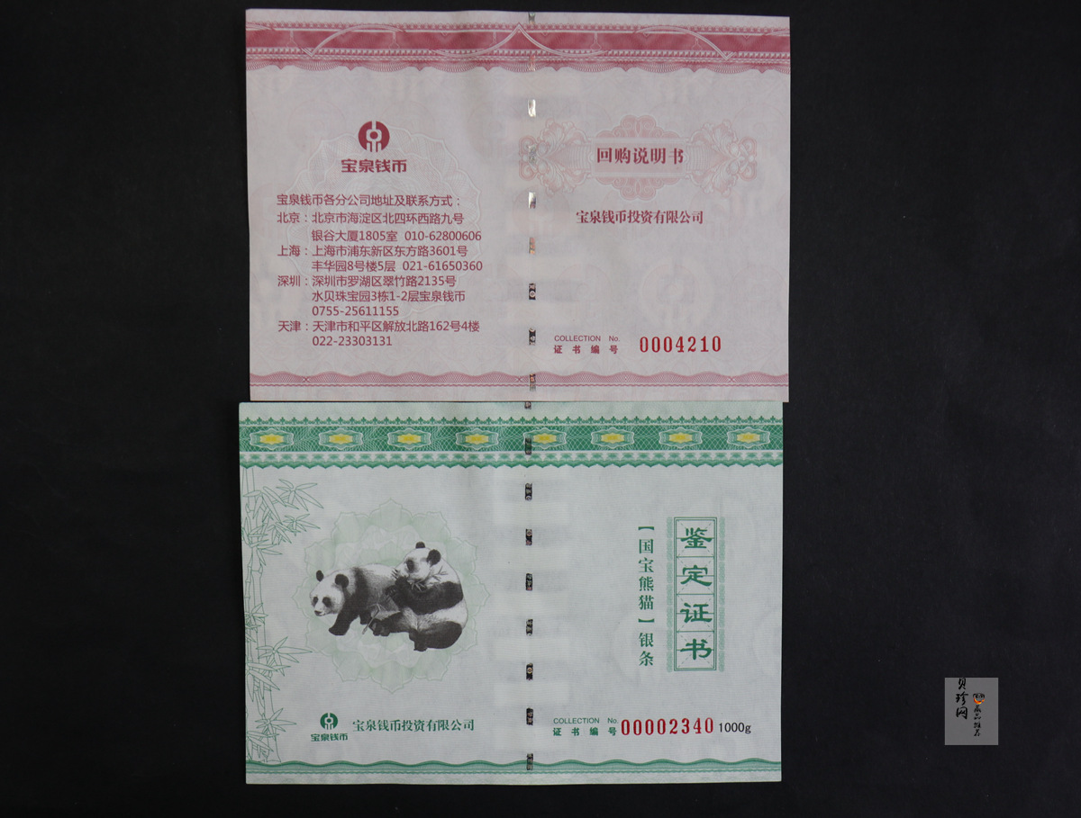 套币:2014年宝泉钱币国宝熊猫1000克银条
