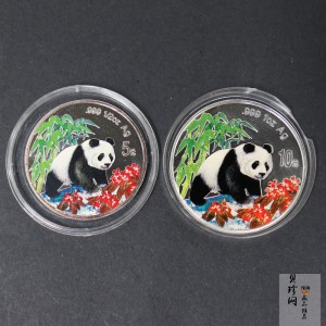 • 【979560】1997年熊猫1+1/2盎司彩色精制银币2枚一套