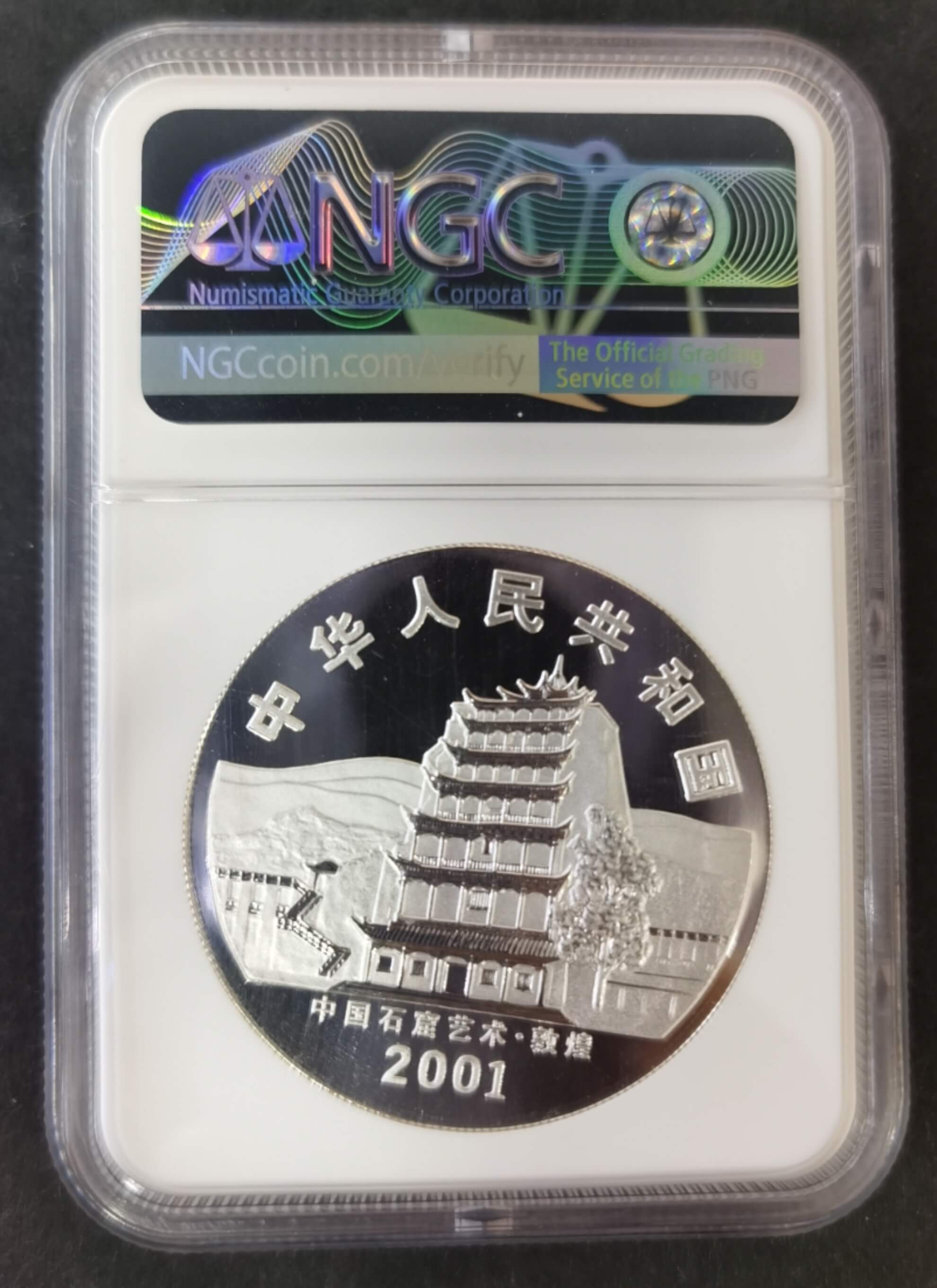单币:2001中国石窟艺术(敦煌)金银纪念币-盛唐菩萨像2盎司高浮雕精制银币