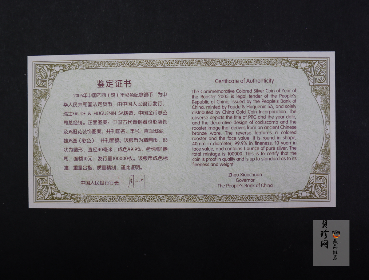 以上不难看出,作为2005鸡年发行的1盎司圆形银币其收藏价值是显而易见的。