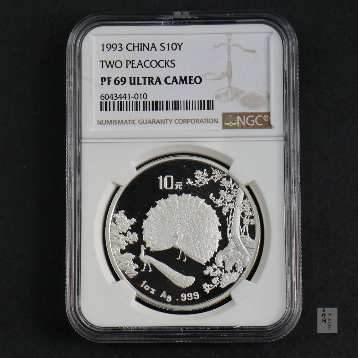 单币:1993年中国古代名画系列(孔雀开屏)1盎司精制银币