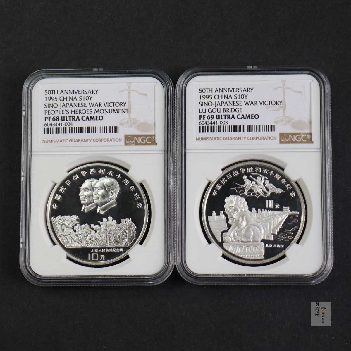 • 【959330】1995年中国抗日战争胜利50周年-1盎司精制银币2枚一套