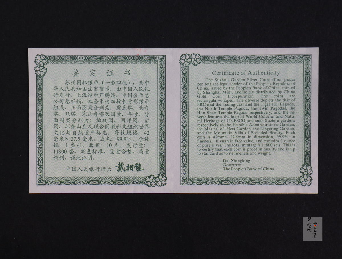 • 【990011】1999年苏州园林银币四枚一套