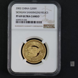 • 【020801】2002年四川三星堆金银纪念币-青铜纵目面具1/2盎司精制金币