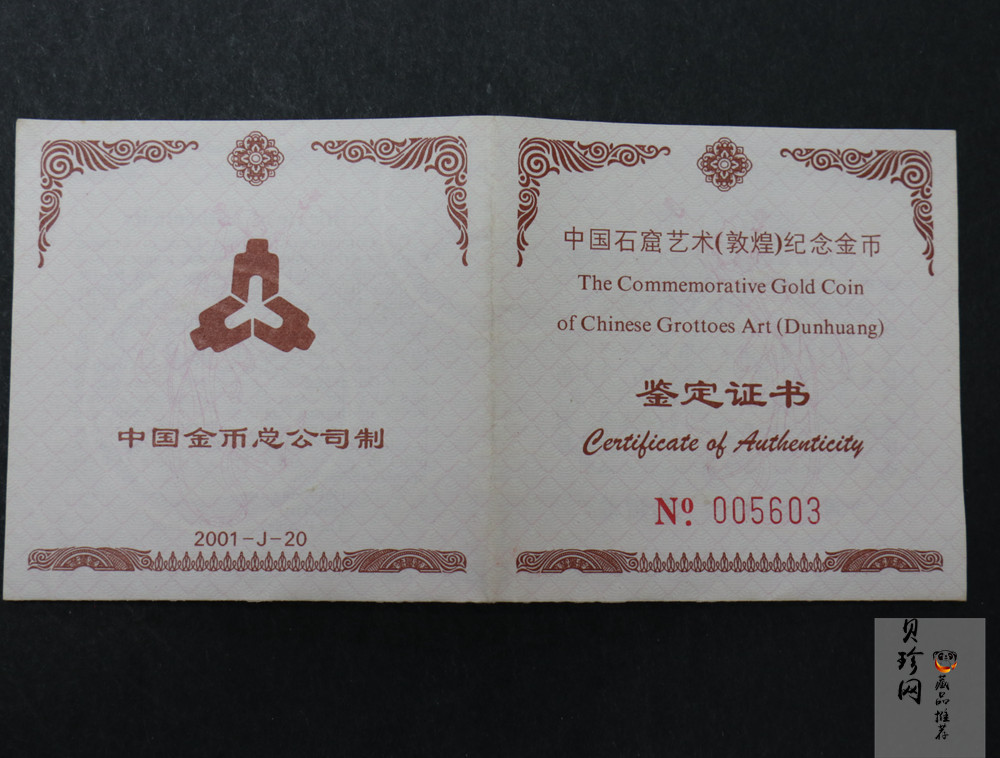 【010402】2001年中国石窟艺术(敦煌)金银纪念币-唐代长鼓舞图1/2盎司精制金币