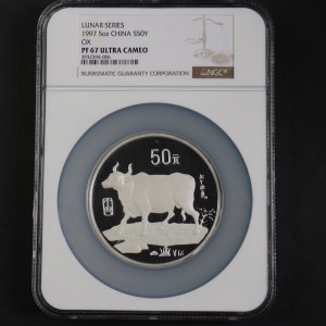 单币:1997中国丁丑(牛)年银币-张大千绘《黄牛图》5盎司精制银币