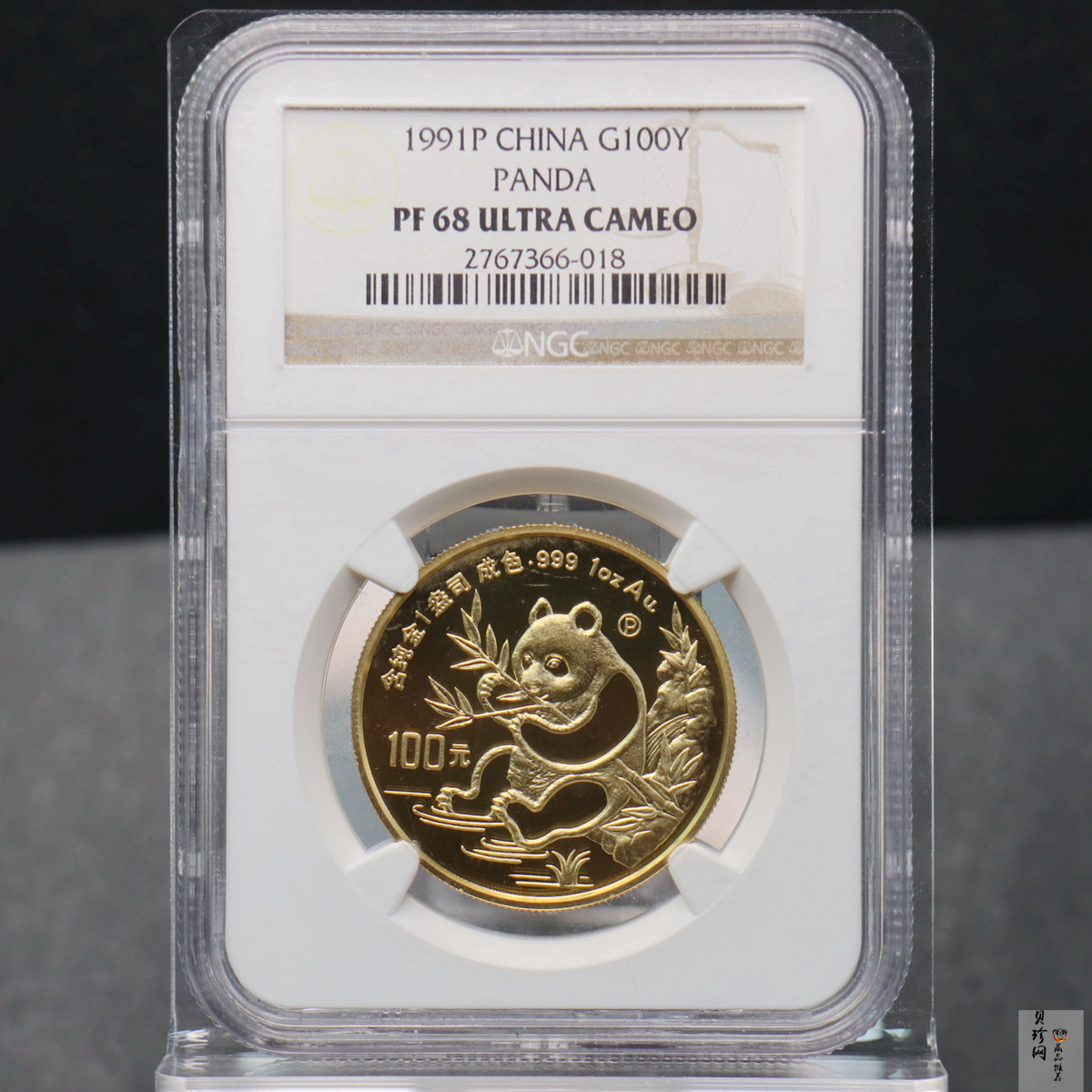 单币:1991版熊猫金银纪念币1盎司圆形普制金质纪念币