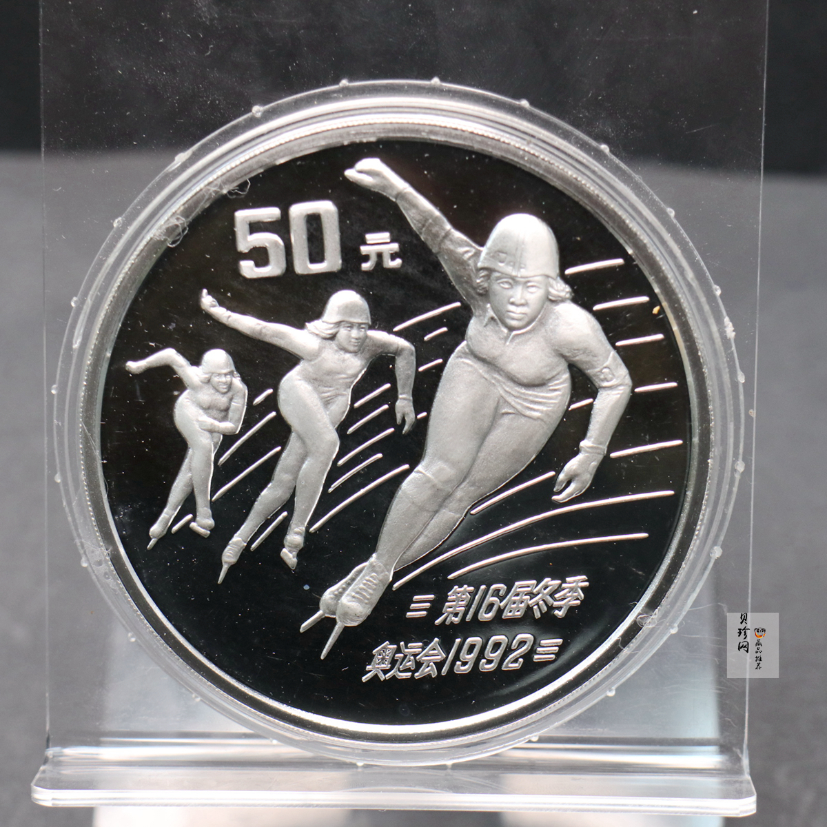第十六届冬奥运1992年2月8日-23日在法国阿尔贝维尔举行。共有64个国家和地区的1801名运动员参加比赛。中国派出35名选手参加了滑雪、滑冰、冬季两项等34个小项比赛。中国台北奥委会派出8名运动员参加了高山滑雪、雪撬、花样滑冰等5个小项的比赛。法国从1989年起就开始发行纪念币,而我国是从1990年开始陆续发行纪念币的。 1990年发行了其中第16届冬奥会纪念银币1枚,另于1991年又发行了1金1银纪念币,面额分别为金币100元,银币50元和10元。