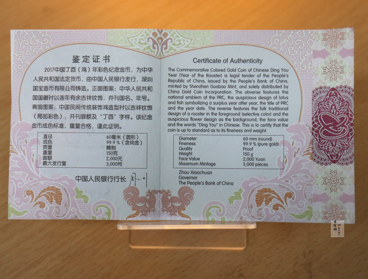 【161511】2017年丁酉(鸡)年生肖流通纪念币-150克彩色精制金币