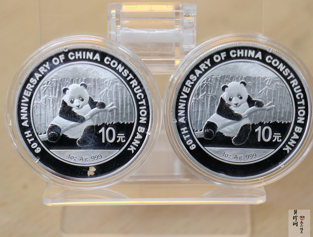 套币:2014年中国建设银行成立60周年熊猫加字1盎司银币2枚一套