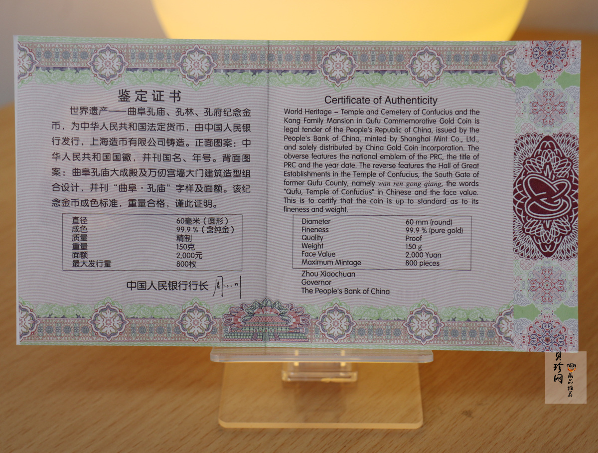 【170501】2017年世界遗产-曲阜孔庙150克精制金币