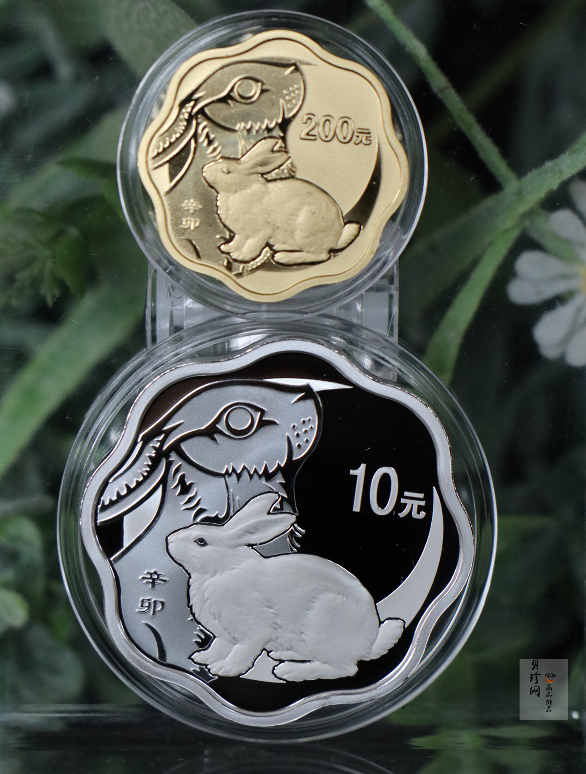 套币:2011年辛卯兔年生肖梅花形金银币2枚一套