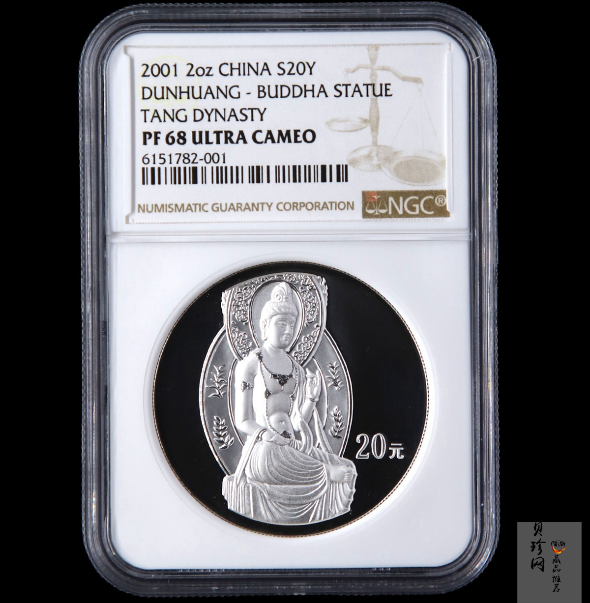 单币:2001中国石窟艺术(敦煌)金银纪念币-盛唐菩萨像2盎司高浮雕精制银币