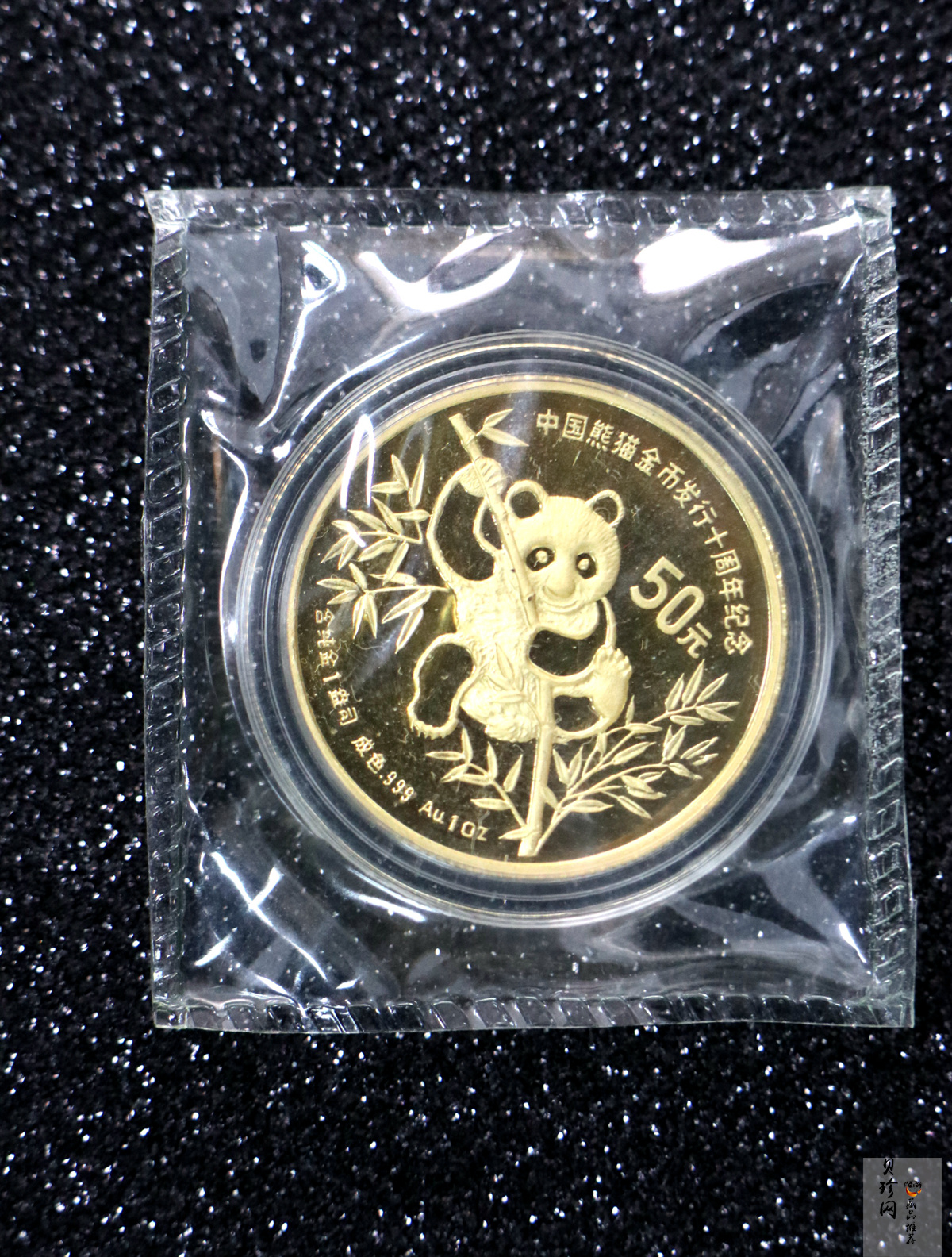 单币:1991年中国熊猫金币发行十周年1盎司精制金币