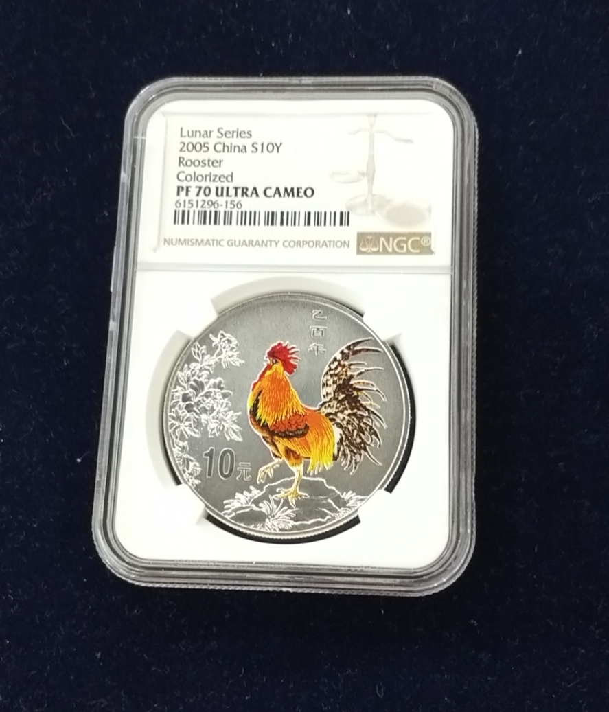 单币:2005年乙酉鸡年生肖1盎司精制彩银币