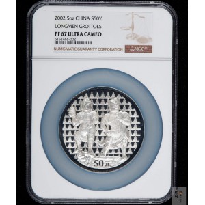 【020504】2002年中国石窟艺术(龙门)金银纪念币-天王、力士像图5盎司精制银币