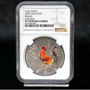 单币:2005年乙酉鸡年生肖1盎司精制彩银币