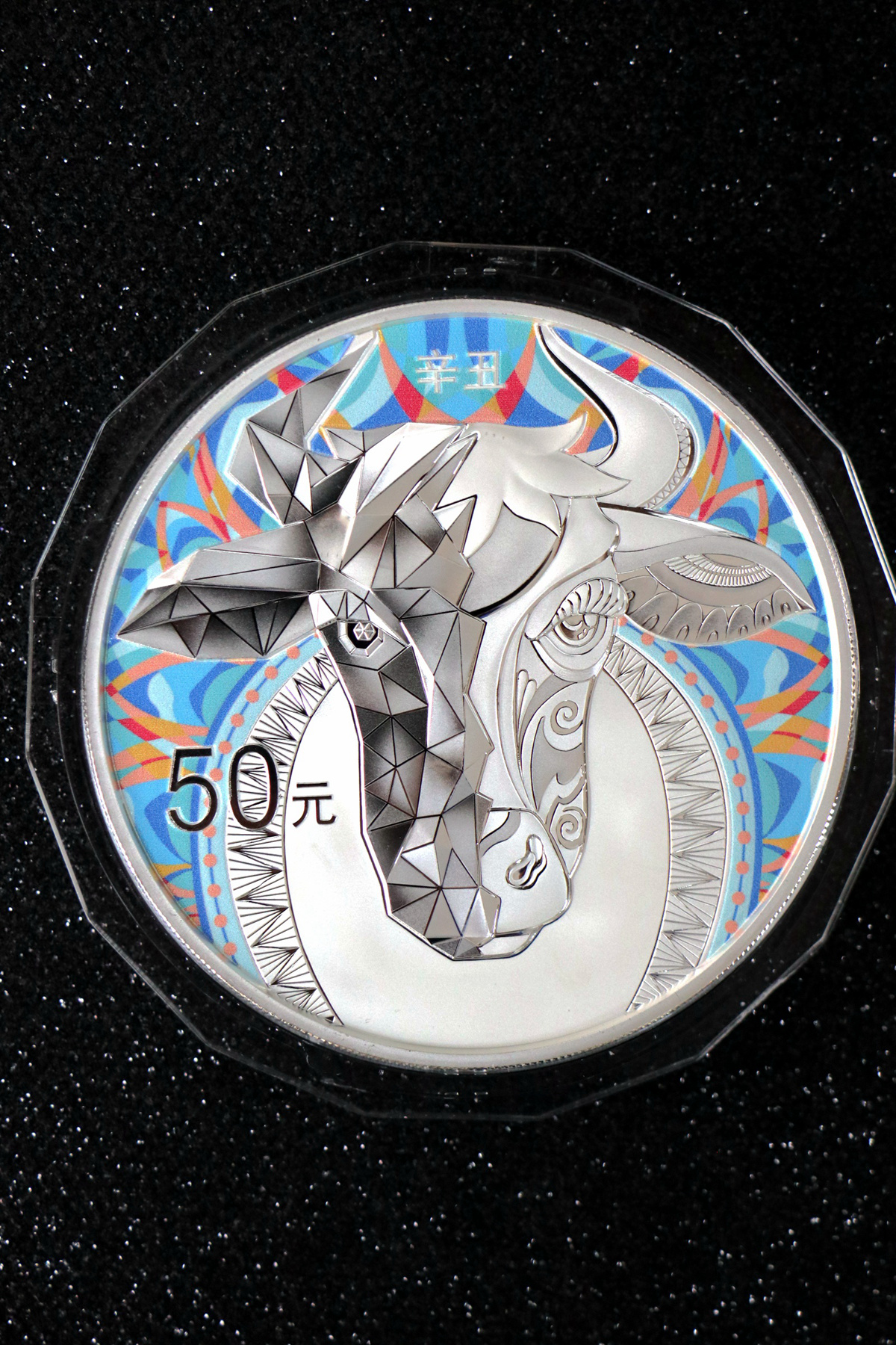 【200612】2021年中国辛丑(牛)年150g圆形彩色精制银币