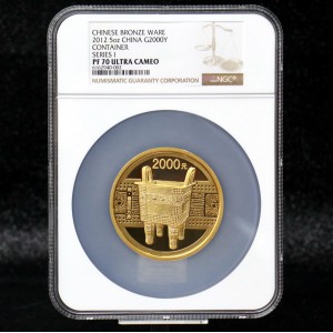单币:2012年青铜器第(1)组-商·兽面纹方鼎5盎司精制金币