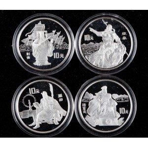 诸葛亮:在金银币的画面上,诸葛亮手执羽扇,头带纶巾,身披鹤氅,端坐在乡野之中的台座之上,正在指挥三军。他从容不迫,轻摇羽扇,一个计策似乎正在筹谋之中。诸葛亮是名士,又是贤相,文韬武略,确实是难得的通才。鲁迅更称“状诸葛之智而近于妖”,把诸葛亮的才能描绘得有些妖气。诸葛亮文韬武略,这是人的才智,但是,能掐会算,阴阳术数,奇门遁甲,无所不晓,七星坛祭东风,都有些神怪色彩,所以台座上的“八卦”图案,又在他的历史原型之外,突出了他的道士形象,这是白文均比较得意的设计,就是这样一个小细节,就把诸葛亮形象上的多元性给交代了。诸葛亮具有“儒者气象”,体现了“以道持守”的儒家道德人格,两者相济互补、相辅相成。而除了诸葛亮“羽扇纶巾”的外部形象,还流泻出舒淡逸雅、潇洒飘逸、从容不迫的精神风范,表现出道家“自然”人格的特征。儒道结合,也是白文均对这个形象的重要塑造点。
