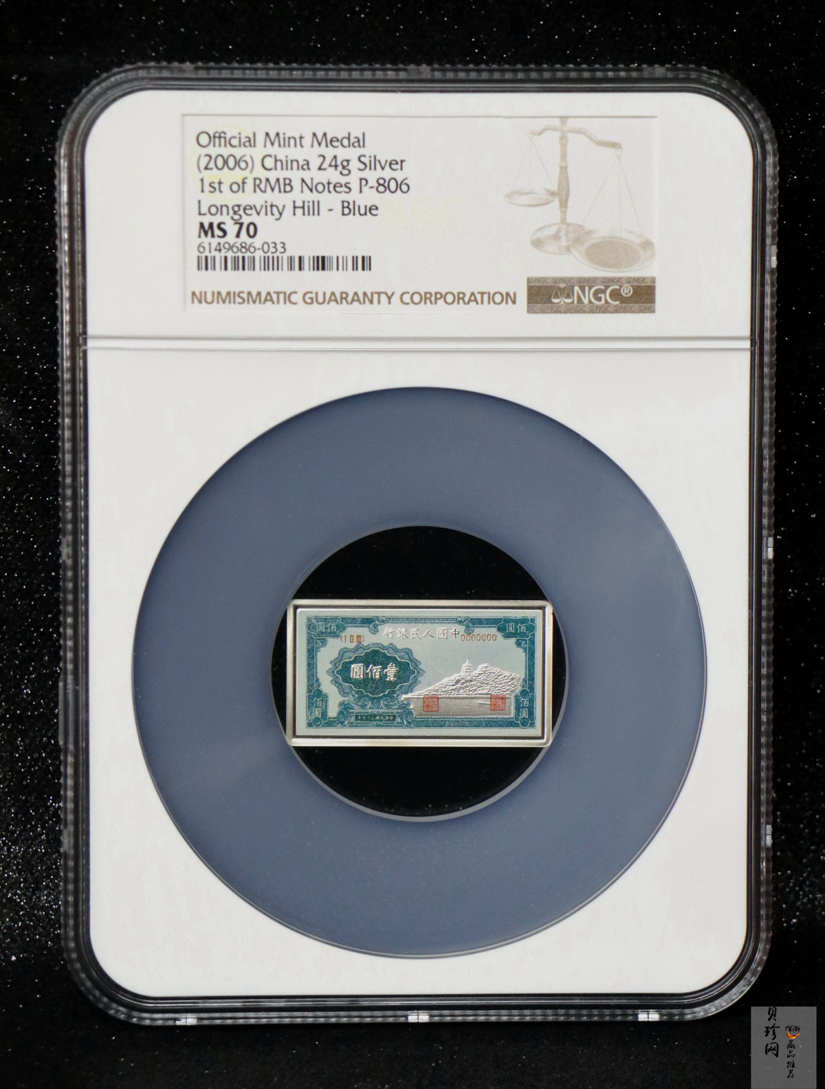 • 【069550】2006年第一版人民币万寿山(蓝色)100元纯银微缩版24克银章