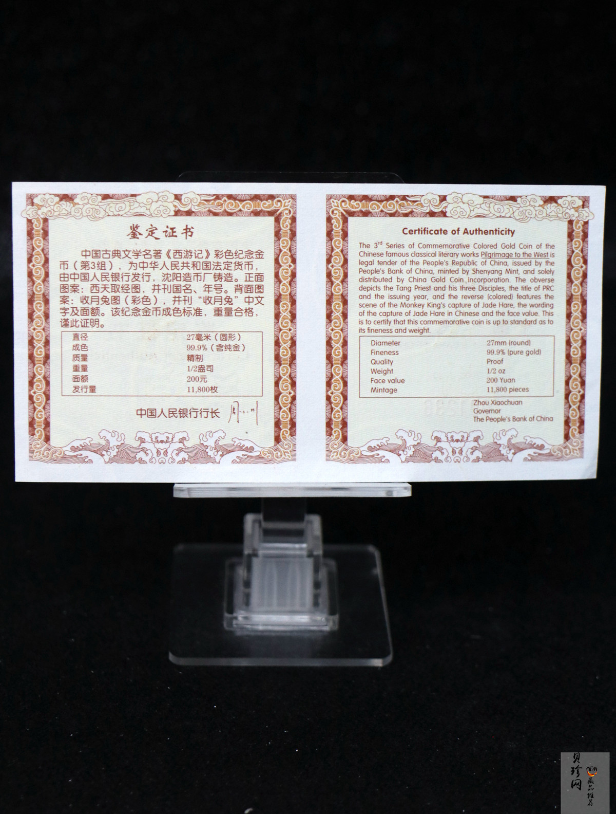 【050702】2005年中国古典文学名著《西游记》第(3)组-收月兔图1/2盎司精制彩金币