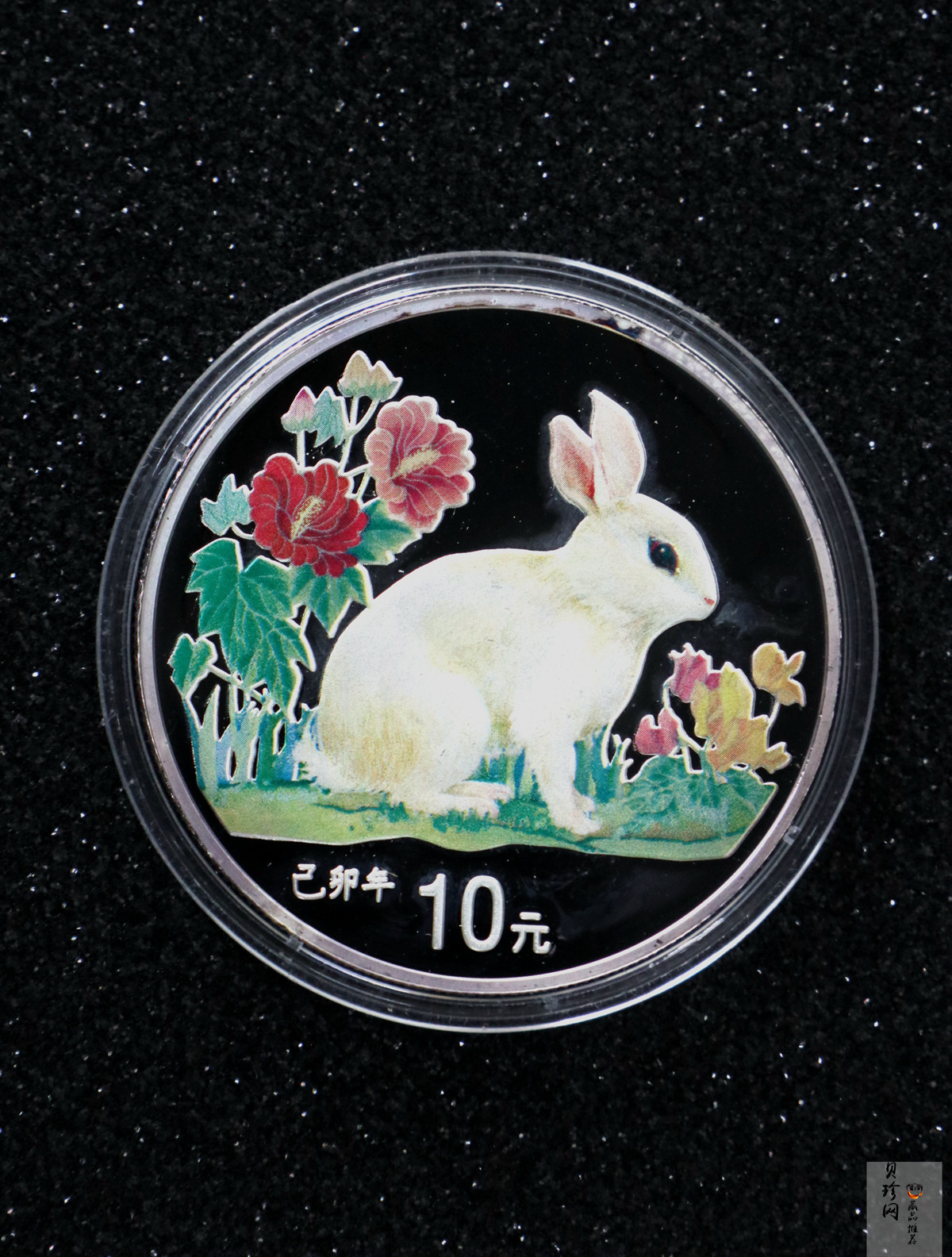 【990210】1999中国己卯(兔)年金银铂纪念币-静兔1盎司彩色精制银币