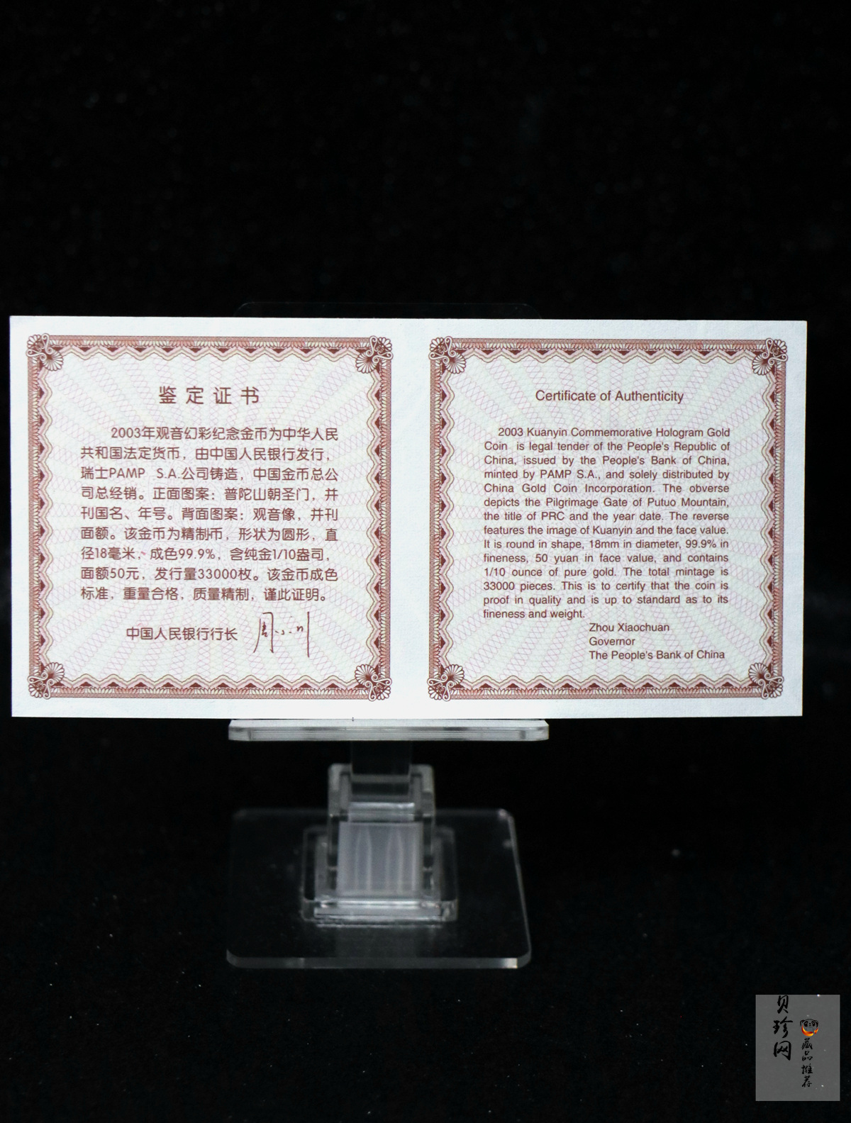 • 【031001】2003年观音纪念币-观音像1/10盎司圆形幻彩精制金币