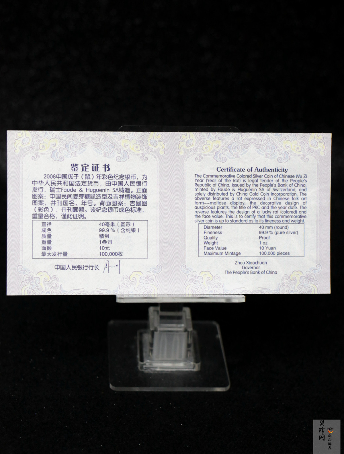 • 【089580】2008年戊子鼠年生肖1盎司精制彩银币(无须版)