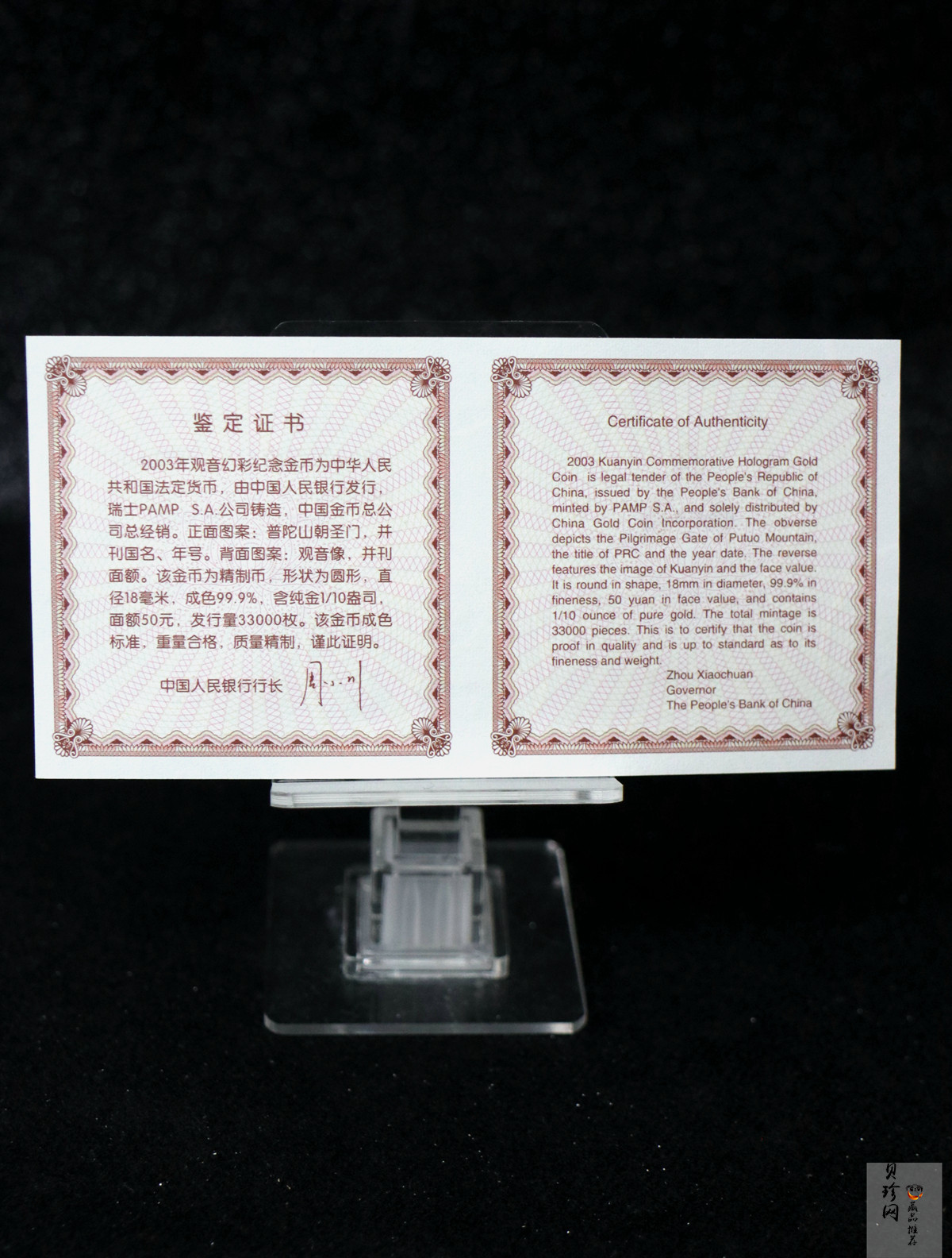 • 【031001】2003年观音纪念币-观音像1/10盎司圆形幻彩精制金币