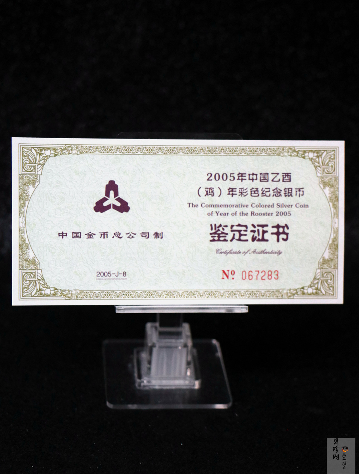 【050209】2005年乙酉鸡年生肖1盎司精制彩银币