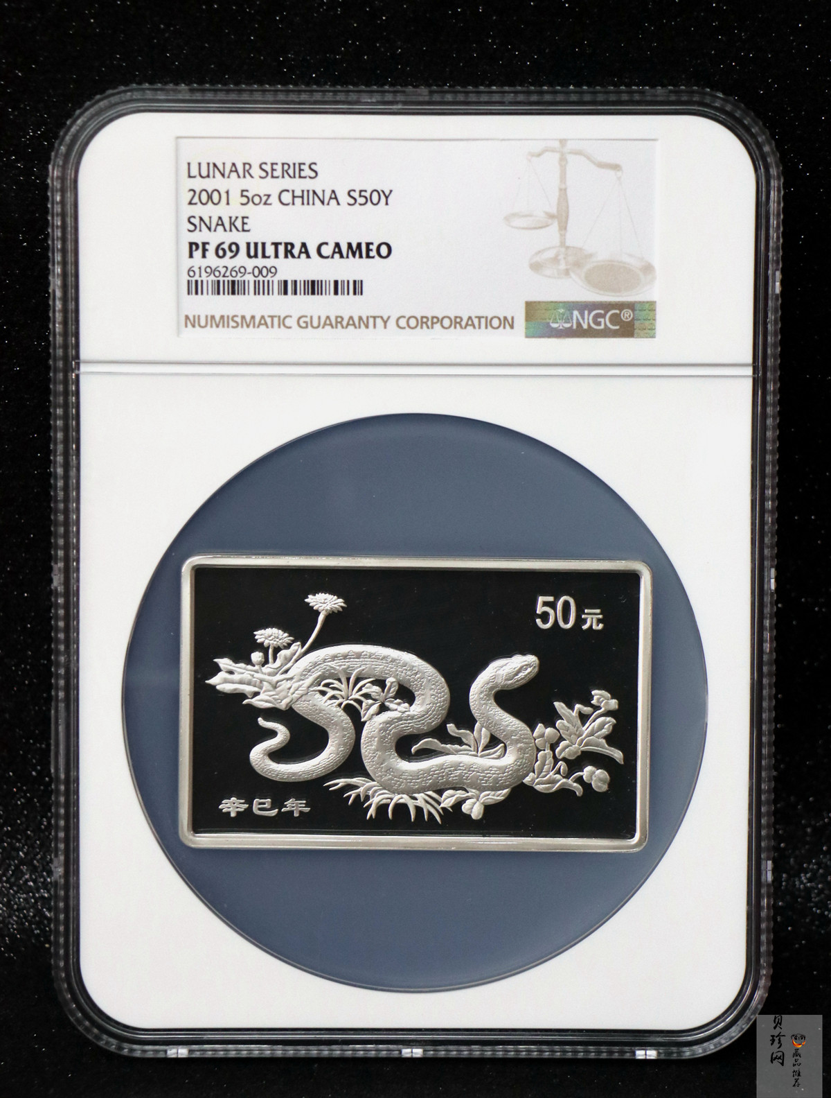 单币:2001中国辛巳(蛇)年金银纪念币-游蛇图5盎司长方形精制银币
