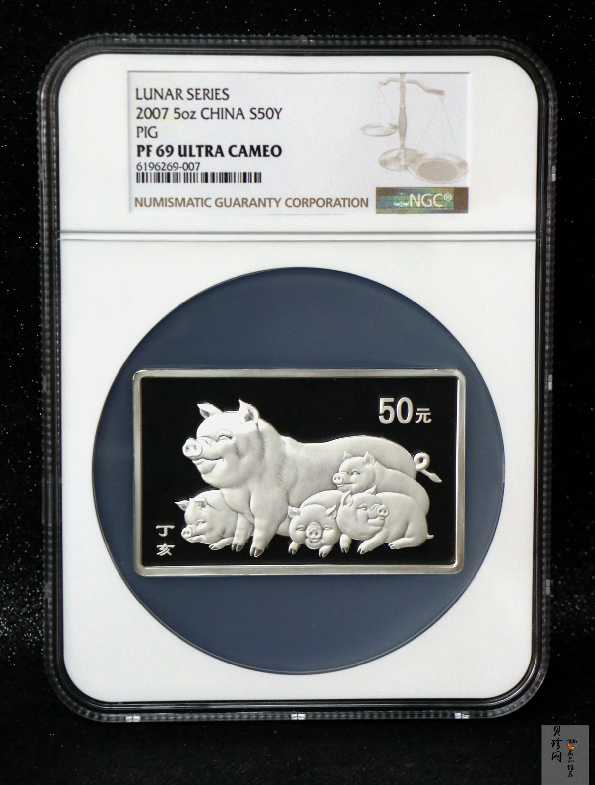 单币:2007年丁亥猪年生肖5盎司长方形精制银币
