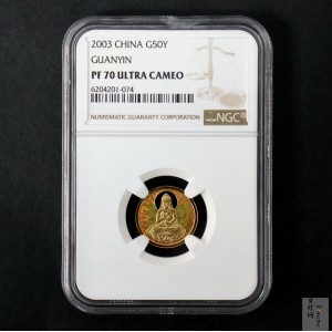 • 【031001】2003年观音纪念币-观音像1/10盎司圆形幻彩精制金币