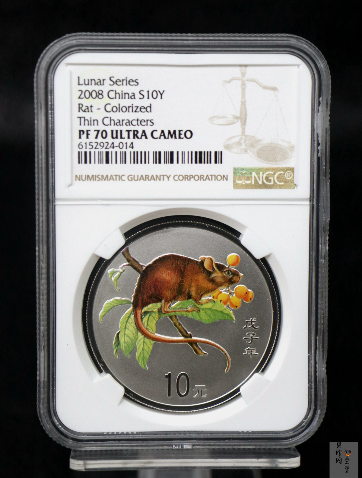 • 【089580】2008年戊子鼠年生肖1盎司精制彩银币(无须版)